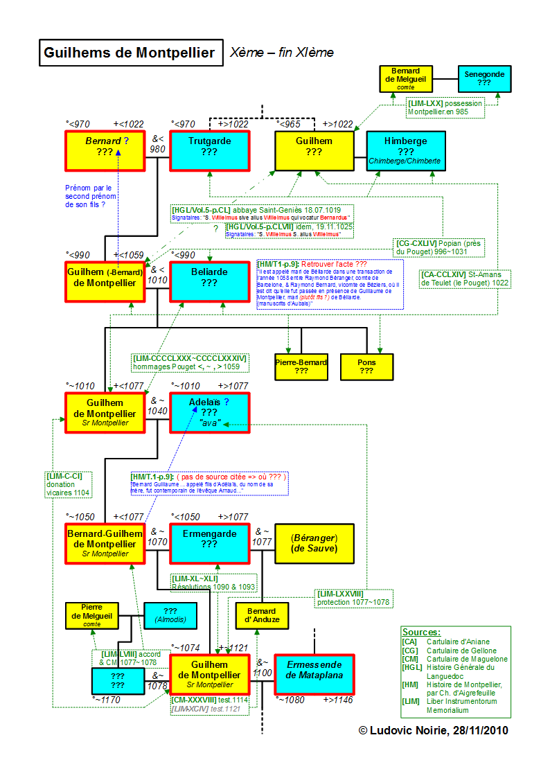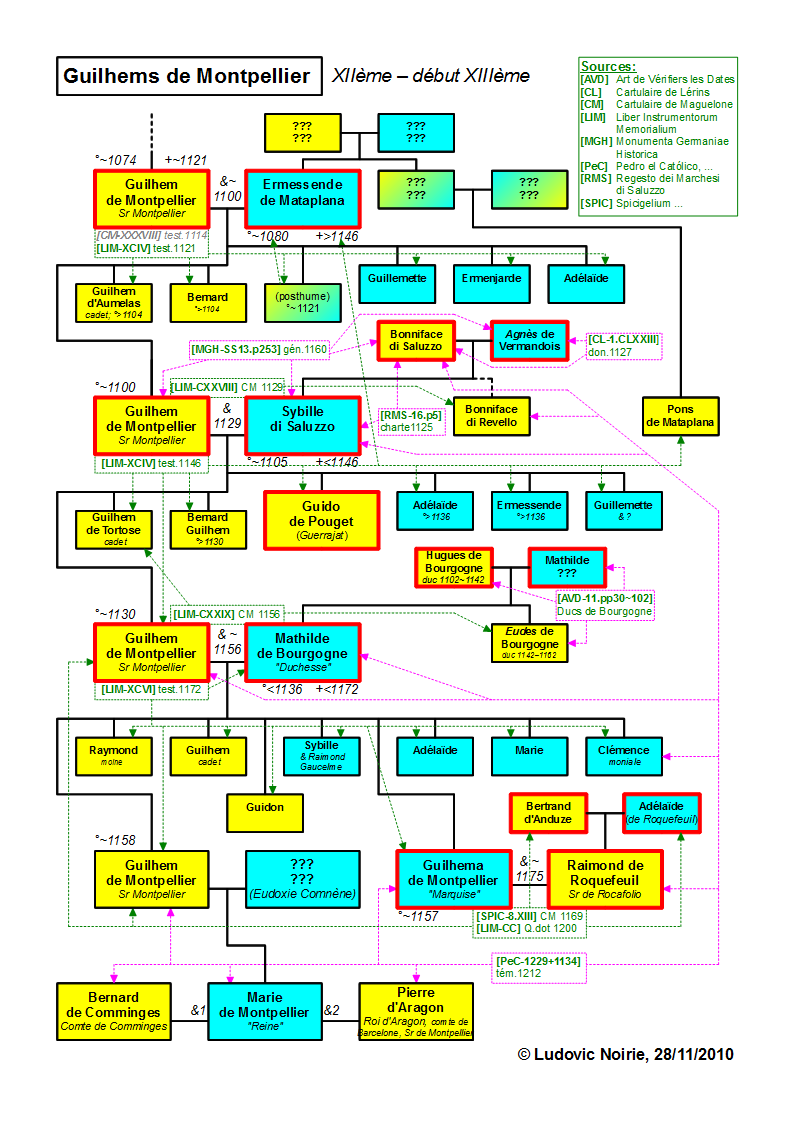 Certains éléments de cette généalogie des Seigneurs de Montpellier présentent quelques difficultés,